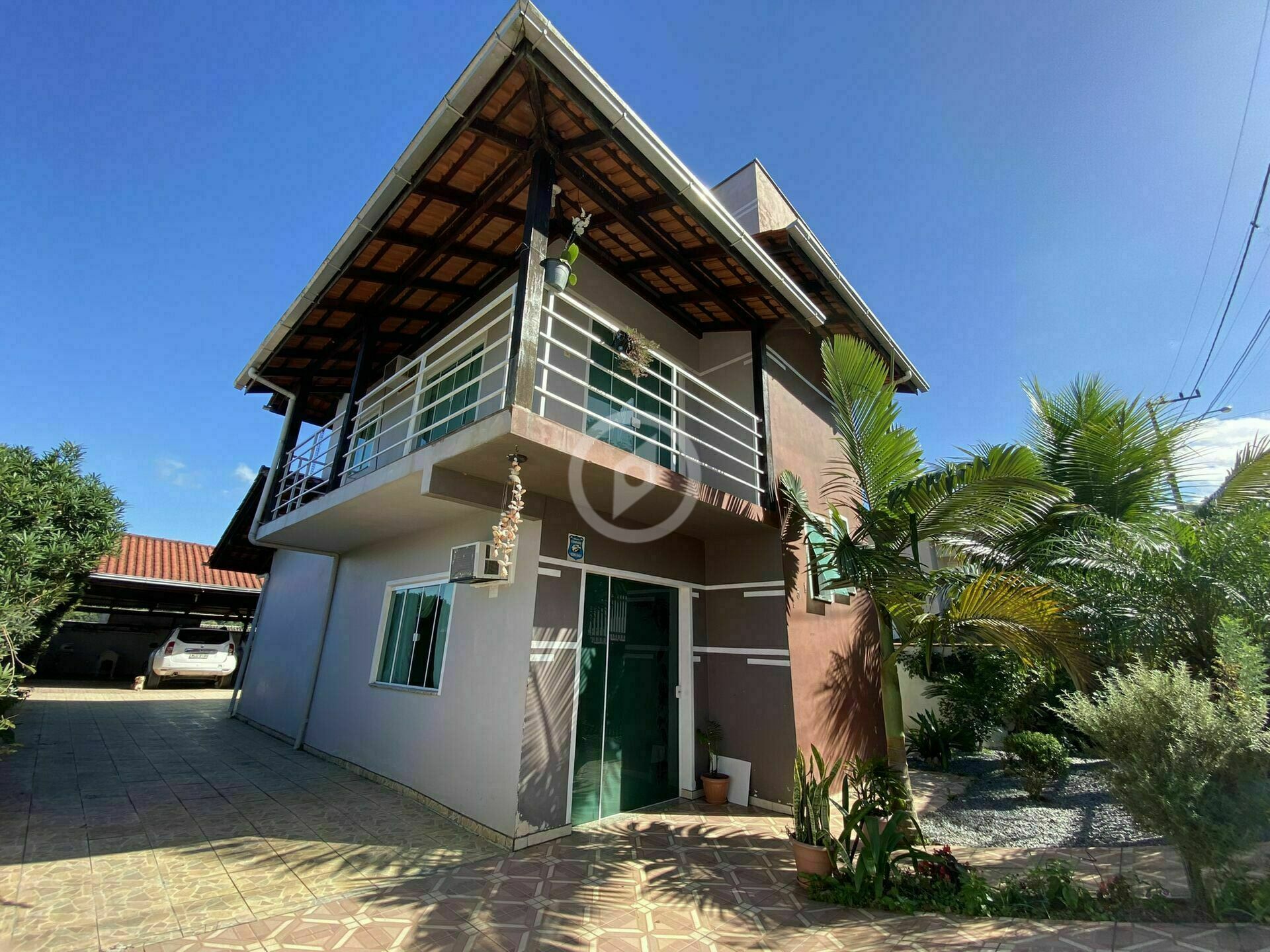 Casa com 3 quartos, sendo uma suíte com closet e sacada. A casa está localizada em local alto, livre de enchente, possui horta e jardim, e garagem coberta para dois carros.