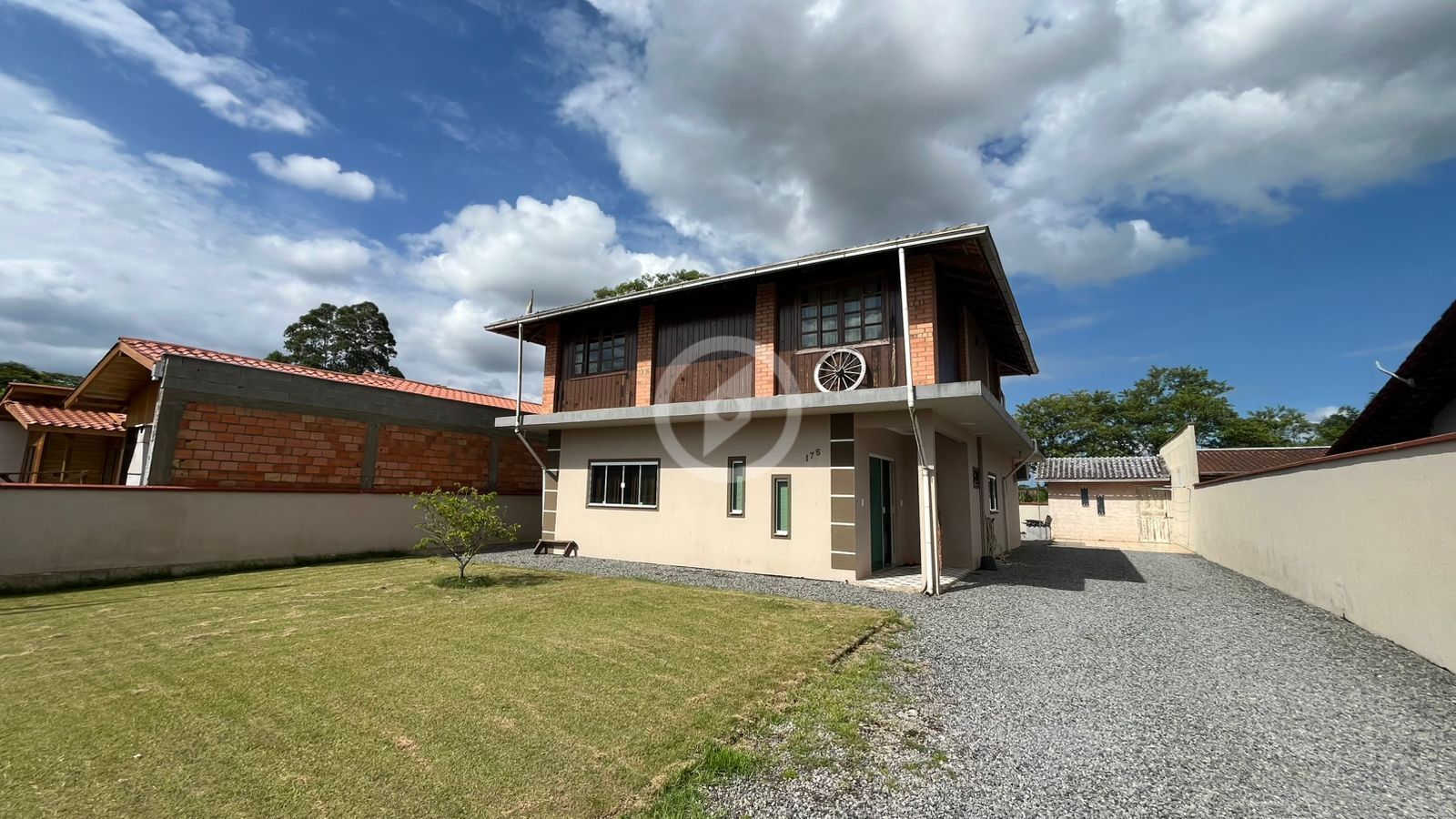 Casa com 204m de área construída, com 3 quartos, sendo uma suíte, sala e cozinha, banheiro social e lavanderia, e na parte superior uma área de festas com churrasqueira e bastante espaço para momentos de lazer.