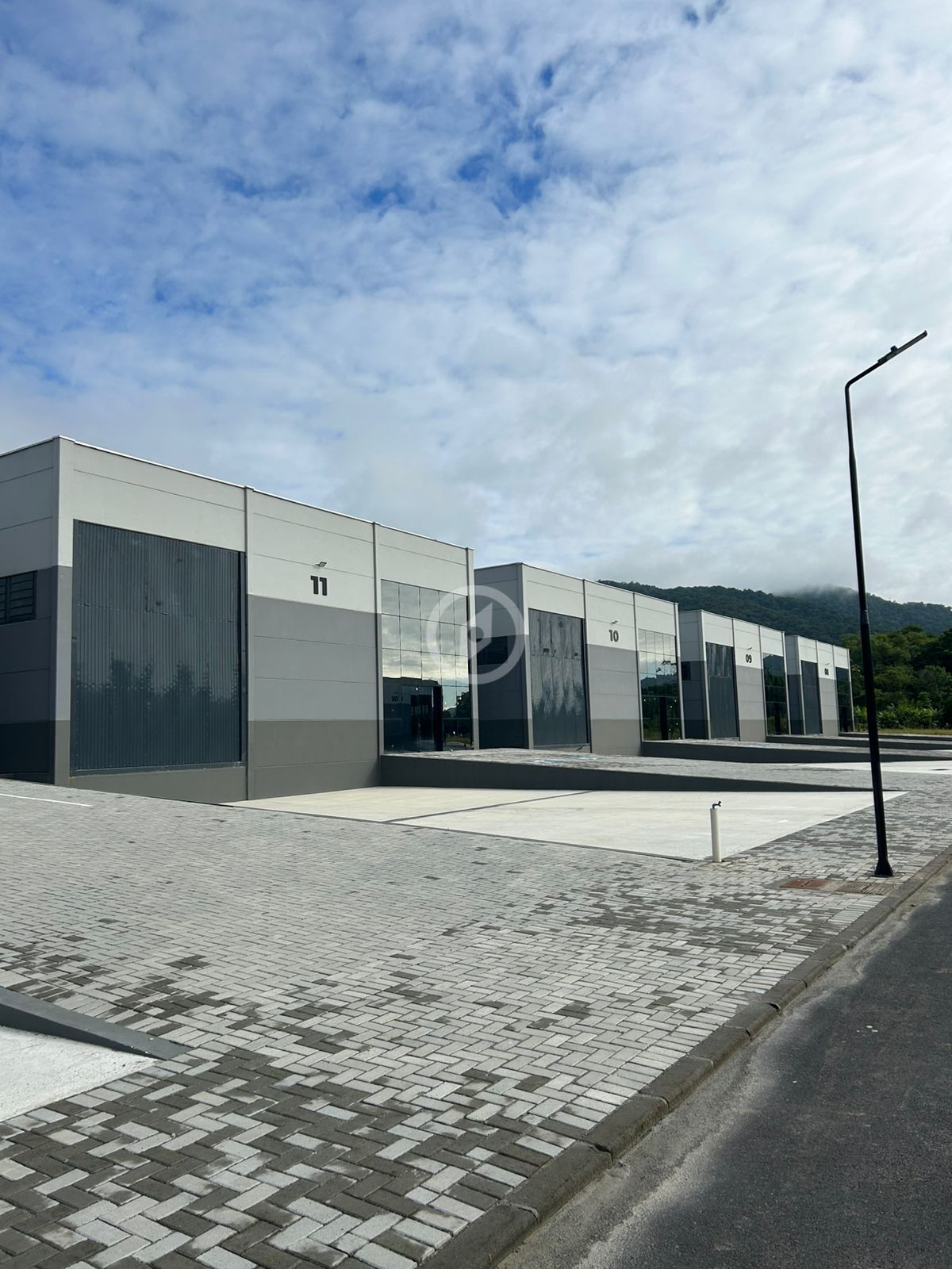 Estacionamento frontal, rampa de carga e descarga, portaria com portão eletrônico, câmeras de segurança e acesso facial.